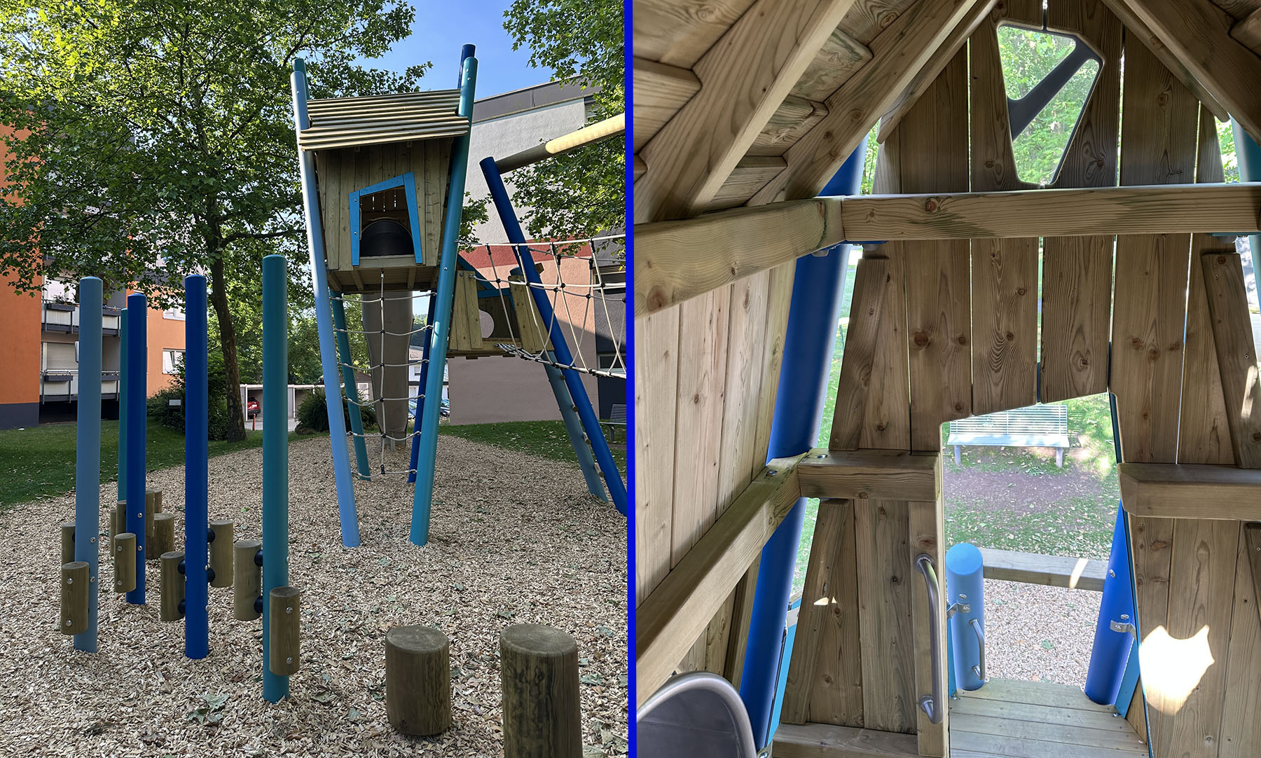 Unsere neuen Motorik-Allrounder - Klettern, Balancieren und Rutschen kombiniert mit abenteuerlichem Baumhaus-Flair